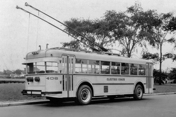 | After the last major new streetcar track extension was completed in 1929, the DSR management turned its focus toward an increasingly popular form of electric-powered transportation that was less-costly than constructing new rail lines—electric "trackless" trolley-coaches. The Plymouth Road line would soon become Detroit's first bus line to implement this new mode of public transit. |