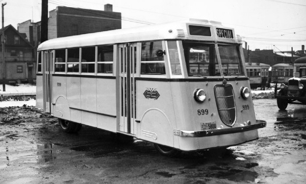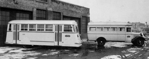 Experimental coach #899 was turned over for service on April 22, 1936. This photo shows the new experimental coach posing along-side one of the DSR's conventional style Ford buses. Both vehicles seated 21-passengers. Coach #899 would remain in service until January 5, 1943, when it was then converted into DSR service truck #5376. [photo source: Detroit's Street Railways – Vol. II: City Lines 1922-1956 (DSR Files photo)] |