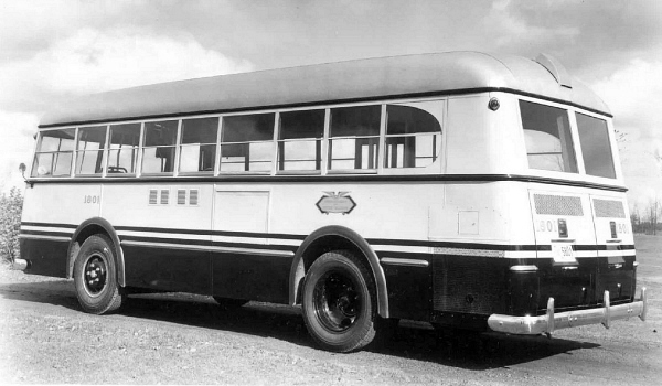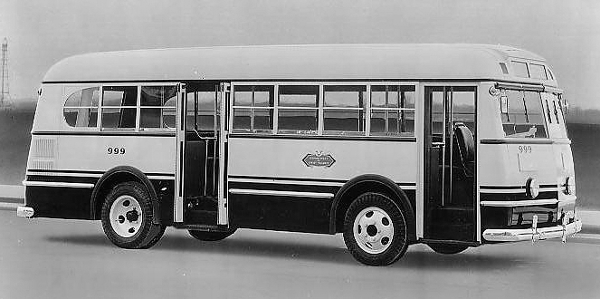 The DSR's work on its experimental bus drew the attention of the Ford Motor Company. As a result, Ford engineers, in cooperation with the DSR, would completely redesign its bus product and develop a lightweight low-priced bus which Ford called its Ford Transit Bus. Ford engineers repositioned the engine and drive-train, shortened the wheelbase, and moved the front door ahead of the front axle. In June 1936, prototype coach #898 (above) was turned over to the DSR for testing. This demo would bring about the largest single bus order to date for Ford buses. [photo source: Motor Coach Age Magazine – Mar-Apr 1992 edition (Ford Archives Collection)] |