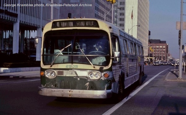 ATTENTION: The "DetroitTransitHistory.info" web-site is in need of additional photos, particularly interior views, of the DSR "New-Look" model coach T8H-5307A. These would include b-&-w and/or color photos of this series transit coach manufactured by General Motors Truck & Coach: * The #2800-2900 series — delivered in 1972 Of course, photos of any additional DSR/DDOT "new-look" models (a.k.a. "fishbowls" or "silver-sides") are also welcome. Any interior photos of DSR/DDOT new-looks are needed as well. If you would like to share your photos on this web-site please contact the site-administrator at: detbusfan@detroittansithistory.info (proper credit will be given to the photo donator, unless requested otherwise) |