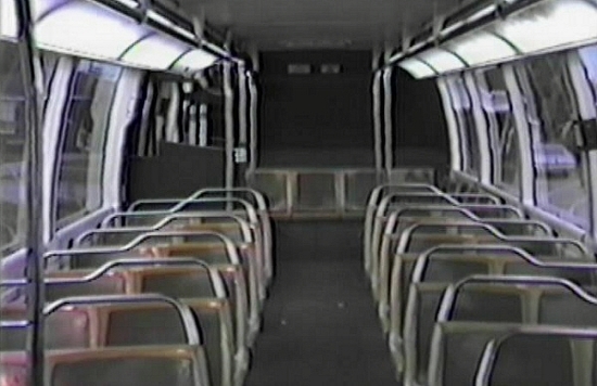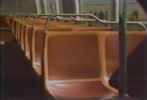 | Instead of the individual plush brightly-colored cushioned seats that were found on the GMC "New-Look" and AM General coaches delivered in 1975, the new GMC RTS-IIs earmarked for DDOT arrived with tough, sturdy, fiberglass/vinyl seats built to withstand vandalism. Because the cushioned seats were often subject to malicious slashing and considerable passenger abuse, these less comfortable seats were installed. [Video images from site-owner's video collection] |