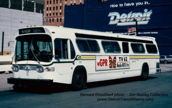 In the spring of 1983, the Southeastern Michigan Transportation Authority (SEMTA) would begin construction on the Downtown Detroit People Mover Project, as the first phase connector to a future Woodward Avenue rail system. Detroit had been one of four cities selected by the Urban Mass Transportation Administration (UMTA) for its 1975 Downtown People Mover Program (DPM) — a federally sponsored nationwide competition that offered federal funds to cover much of the cost for planning and construction of a Downtown People Mover system. Unfortunately, the Detroit SEMTA project would soon find itself plagued by mis-management and numerous construction mis-haps. Nearly $66 million in massive cost-overruns were being projected. In 1984, transit officials from the Reagan Administration threatened to cease all federal funding for the remainder of the project. This resulted in an agreement being reached with UMTA officials where all federal funding for SEMTA projects (including new buses earmarked for Detroit) would have to be forfeited for at least two years to finish the project. In March 1985, Detroit Mayor Coleman A. Young was able to convince the SEMTA Board to transfer final completion and control of the project over to the City of Detroit. Consequently, total operation and complete control of the Downtown People Mover system would fall under the city's Detroit Transportation Corporation (DTC), and continues so to this day. Unfortunately, with federal transit officials now diverting $53 millions in federal funds to help cover major cost over-runs on the People Mover Project, money originally earmarked for new DDOT buses through SEMTA now had to be forfeited. As a result, the City of Detroit was forced to use city general fund money to address the problems facing the city's aging bus fleet. Beginning in June 1985, DDOT would launch a $6.8 million coach rehabilitation campaign to completely overhaul 89 older DDOT coaches with the use of city funds. This rehab campaign involved mostly GMC "New-Look" coaches purchased by DDOT back in 1975. Plagued also by equipment shortage problems, the department would also lease 14 older coaches from SEMTA. |