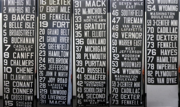 The #1900-series Classics were the last DDOT coaches to use Mylar roll-sign curtains to display their route and destination. The above images show an unrolled "Transign" street-side roller curtain from a DDOT #1900-series Classic coach. The roll-signs on the "Classics" were the only DDOT route signs to correctly display the adjusted route numbers used after the combined route #34 Michigan-Gratiot was once again split into two separate routes back on April 15, 1978. [Sign curtain photos courtesy of Nick Hauser via ex-DDOT coach sold to Kingston Transit] |