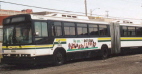 SEATING CAPACITY: 65 NEOPLAN "ARTICULATED" COACH — Two-sectioned "accordion jointed" 60-foot long coaches equipped with two roof-mounted Sütrak a/c units, dot-matrix electronic destination signs, and front-door W/C lifts. Powered by Detroit Diesel Series 6V-92TA engines. Coaches were exclusively assigned to eastside Shoemaker Terminal. Initially assigned to "Artic" runs on Woodward-Jefferson, Michigan-Gratiot, Grand River and Imperial Express, but during later years assigned where needed. VIN: KL013407-KL103420