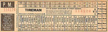 | The above map shows the two routes along Tireman and Joy Road that were operated by the DSR's TIREMAN bus line between 1938 and 1948. Also visible is a TIREMAN transfer that was issued by the DSR during the 1930s. (click-on both images to view larger version) (Map edited by H.B.Craig,II) |