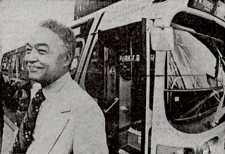 | This June 11, 1975 Detroit Free Press photo shows a smiling Mayor Coleman A. Young along-side one of the city's new $1-a-year D-DOT buses. |
