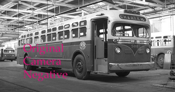 | In 1955, Lake Shore would purchase nine of the "king-size" 40-foot TDH-5105 diesel coaches. The first eight (#501-508) were delivered in August 1955, while coach #509 was delivered in December. However, the first eight 5105s (#501-508) were traded in for eight GM TDH-5301 "New-Looks" delivered in 1960, and resold to St. Louis Public Service, where coach #508 is pictured above. Coach #509 would remain on at Lake Shore as the lone TDH-5105 and was still on the roster when Lake Shore Coach Lines was taken-over by SEMTA in 1971. [photo source unknown — image used for educational purposes] |